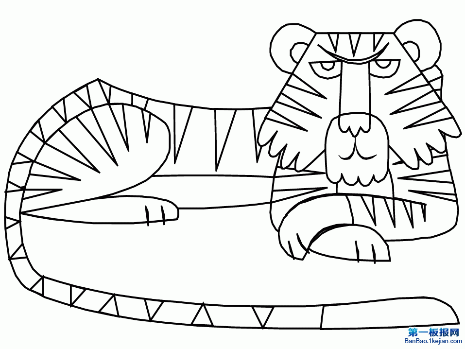 趴着休息的长尾巴老虎简笔画