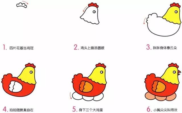 儿童简笔画,彩色涂色简笔画,鸡妈