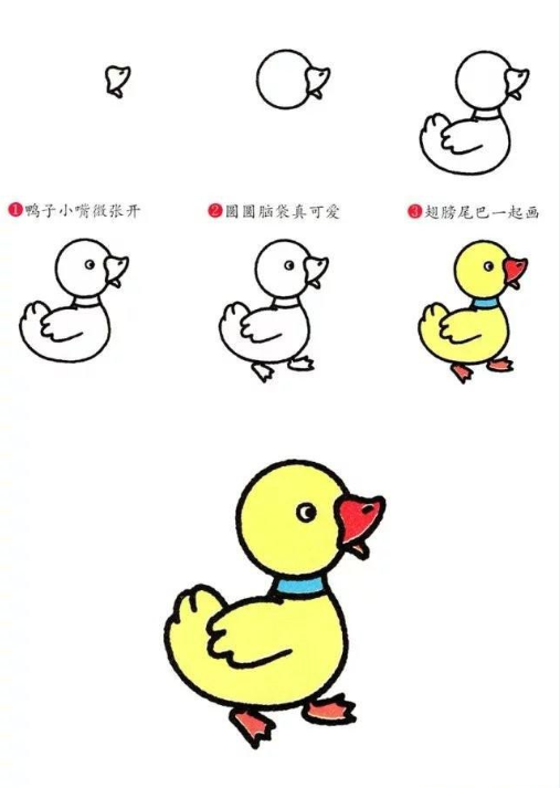 小鸭子简笔画步骤,我是一只快乐的小黄鸭彩色简笔画