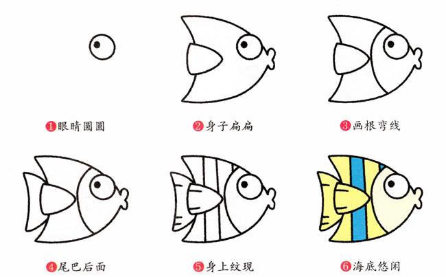 小鱼儿简笔画步骤,我是一只海底悠闲的小鱼儿彩色简笔画