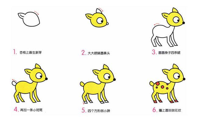 梅花鹿简笔画步骤,我是一只漂亮的小梅花鹿彩色简笔画