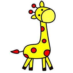 儿童简笔画,彩色涂色简笔画,可爱的长颈鹿简笔画