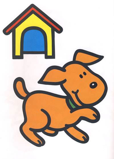 儿童简笔画,彩色涂色简笔画,小狗和房子简笔画