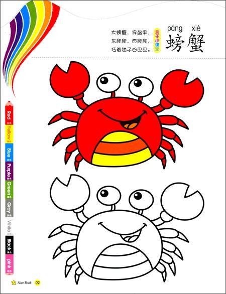 儿童简笔画,彩色涂色简笔画,大螃蟹简笔画