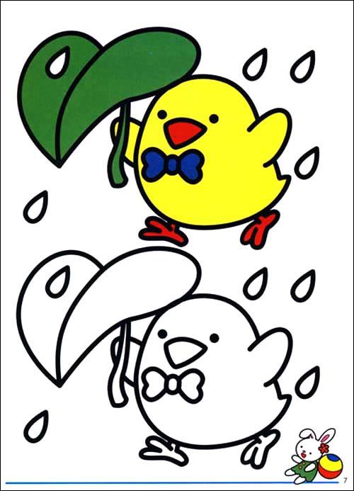 儿童简笔画,彩色涂色简笔画,小鸡淋雨了简笔画