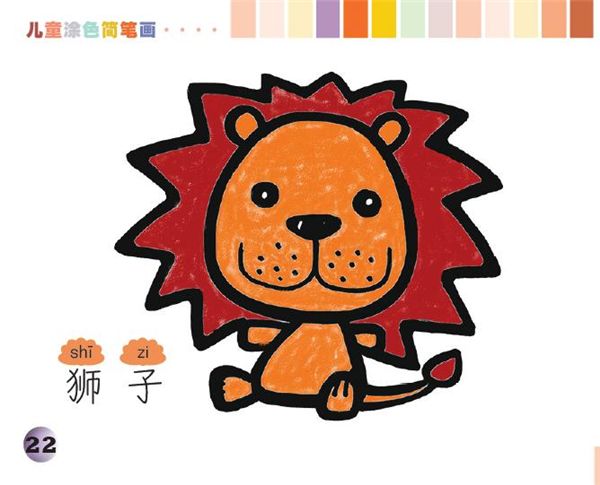 儿童简笔画,彩色涂色简笔画,可爱的小狮子小狮子简笔画