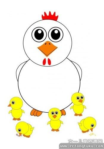 儿童简笔画,彩色涂色简笔画,鸡妈妈带着小鸡简笔画