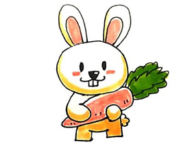 小白兔抱着萝卜的儿童动物简笔画