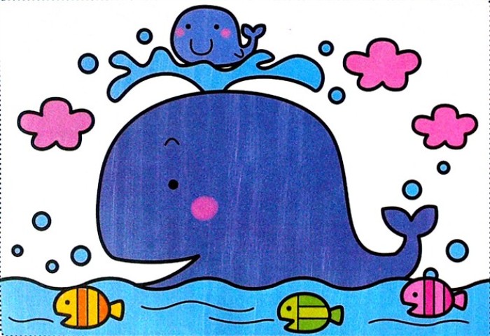 大鲸鱼在海洋里快乐的玩耍简笔画,海洋里的鲸鱼简笔画