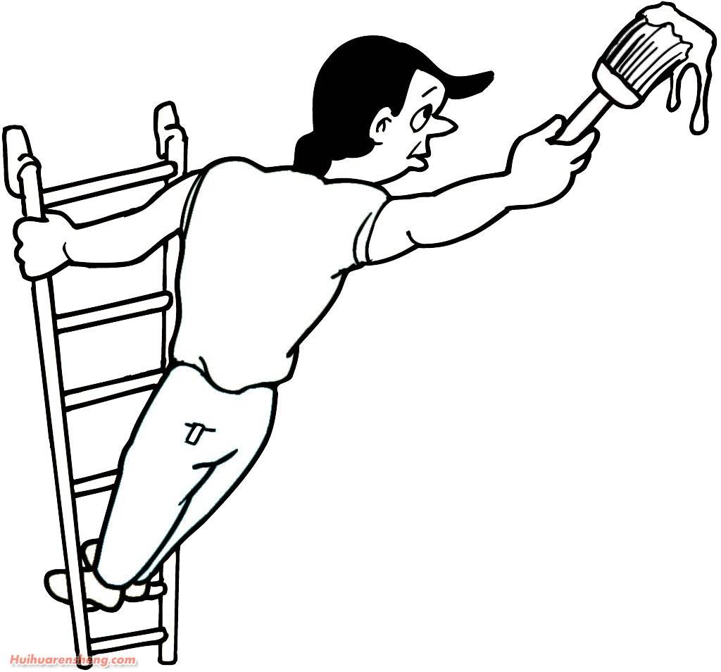 站在梯子上粉刷墙壁简笔画