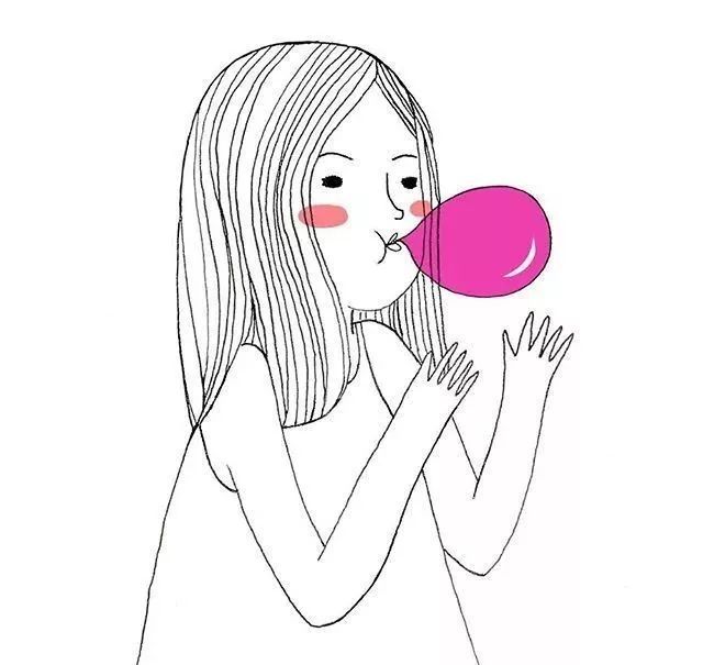 小姑娘吹气球卡通简笔插画