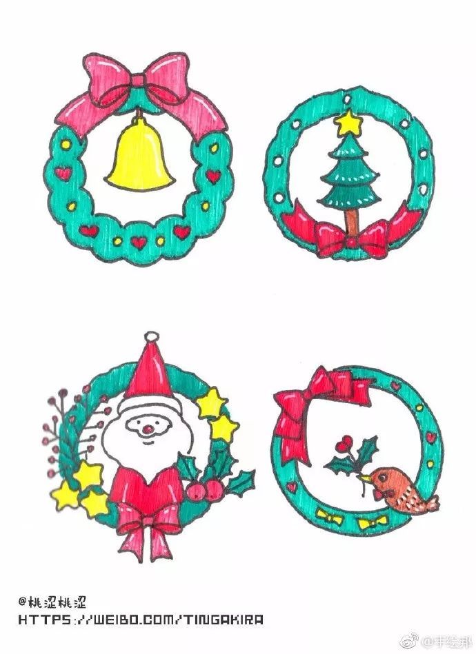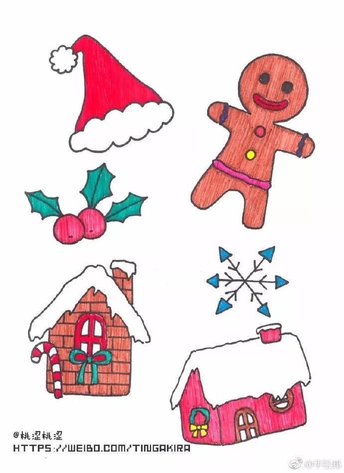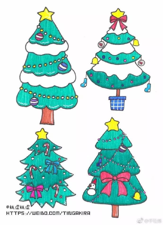 圣诞树卡通彩色简笔画,圣诞元素简笔画