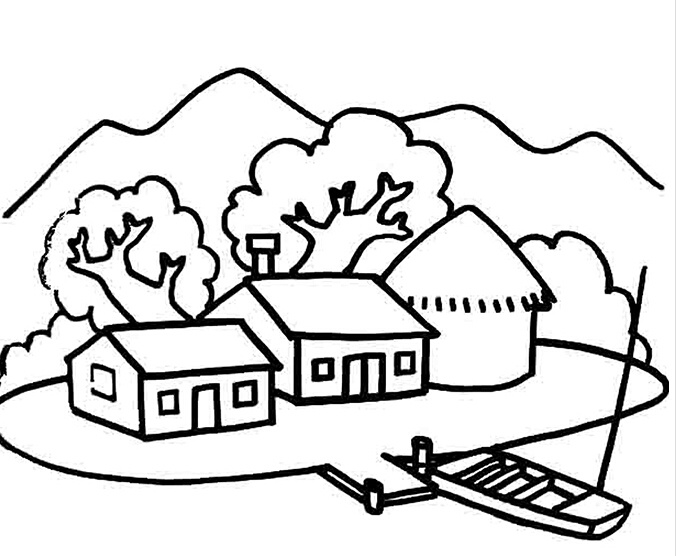 《农家风景》山水风景简笔画