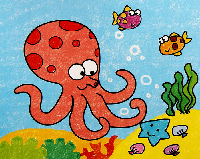 大章鱼和他的朋友简笔画,海底鱼儿简笔画