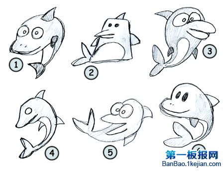 海豚怎样画:先画一个椭圆形的身体。然后画出一些三角形的尾巴,脚蹼和背鳍。 接下来,画出海豚的轮廓。现在,您可以添加像眼睛和嘴的一些细节。添加一些灰色和白色的条纹,你就创建完成!