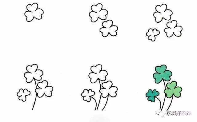 三支四叶草,幸运草的彩色简笔画,四叶草画画步骤图