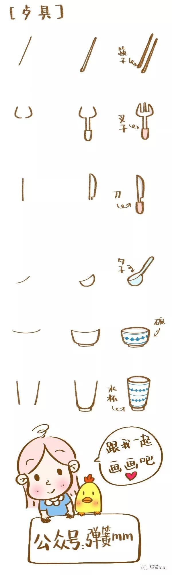 6种常见餐具手绘教程,厨房餐具卡通简笔画教程