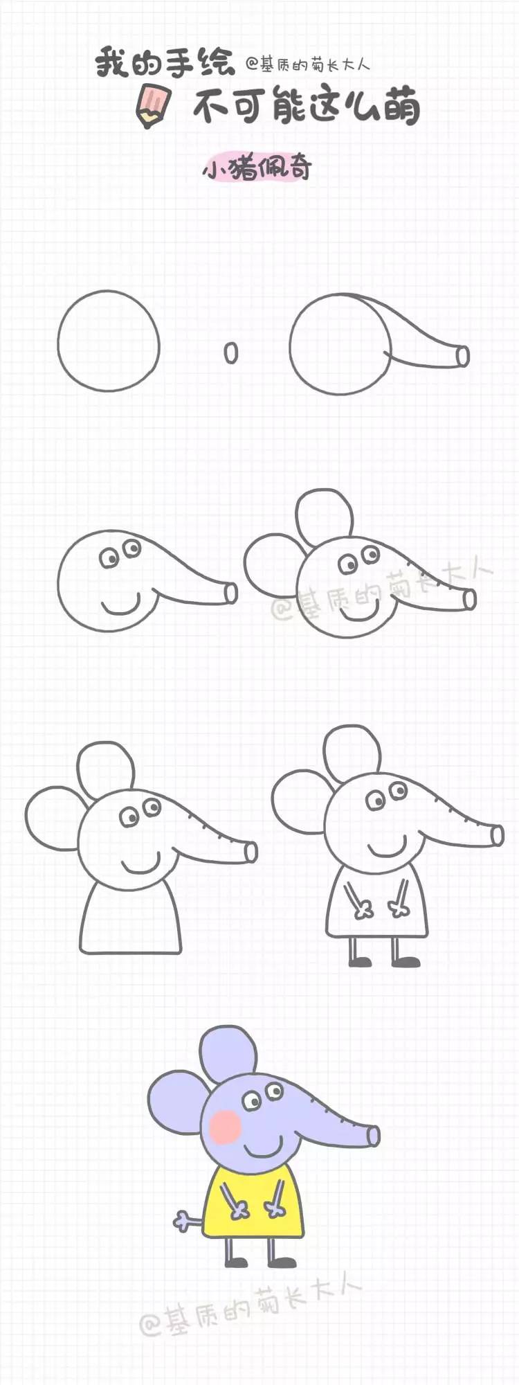 动画片简笔画(小猪佩奇)大象艾米丽简笔画教程