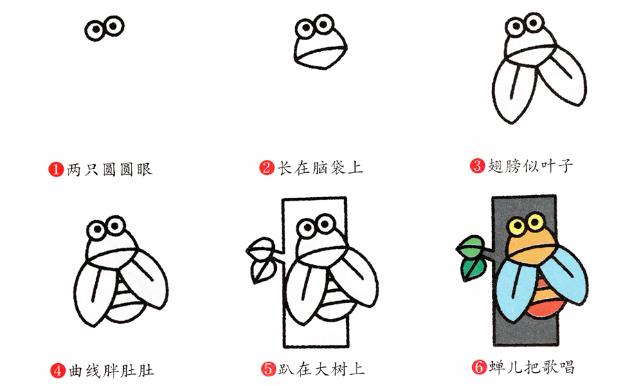 蝉,知了卡通简笔画教程