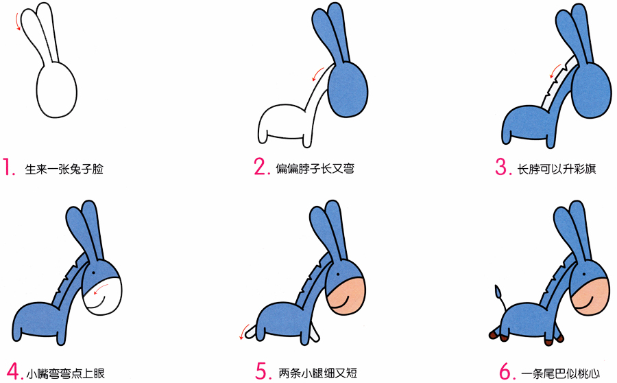 长耳朵的小毛驴简笔画,毛驴简笔画的画法教程