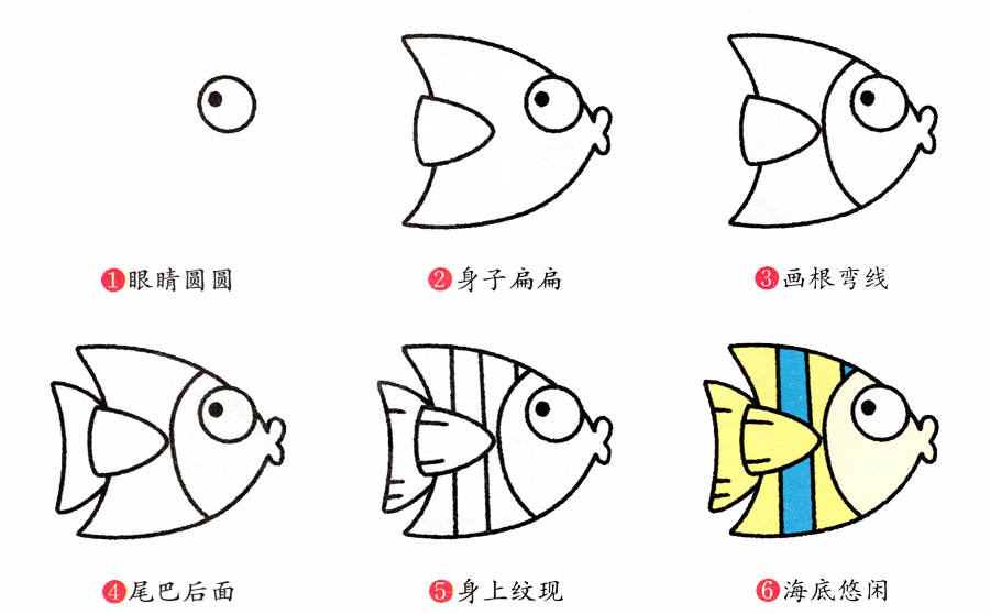 嘟嘴的热带鱼简笔画,鱼儿简笔画画法教程