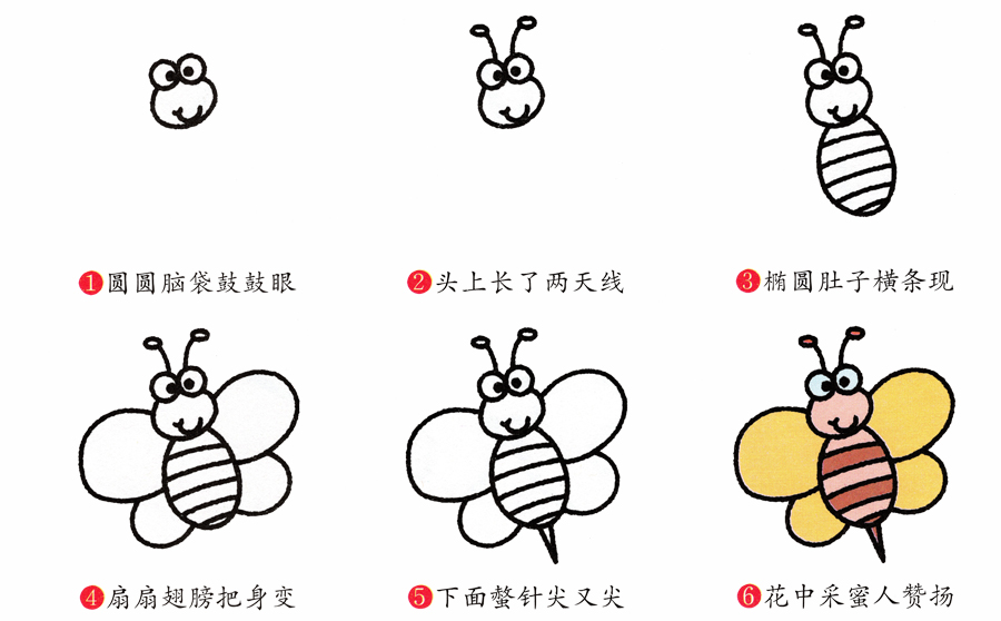 可爱的小蜜蜂简笔画,蜜蜂彩色简笔画教程
