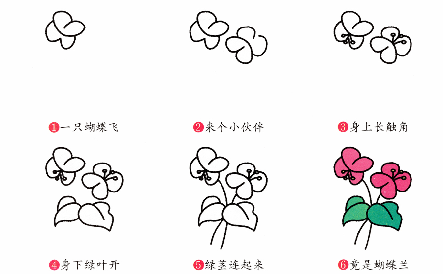 蝴蝶兰简笔画,花儿简笔画蝴蝶兰的画法教程