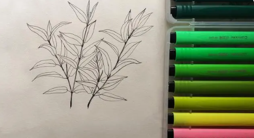 准备好需要的材料,下面是赤楠树嫩苗简笔画教程,要开始画啦~