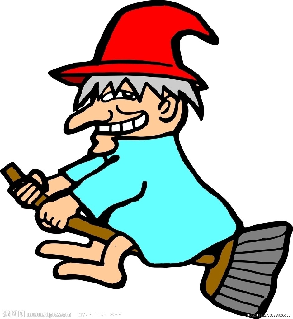骑着魔法扫把的巫婆简笔画,魔法杖巫婆彩色简笔画