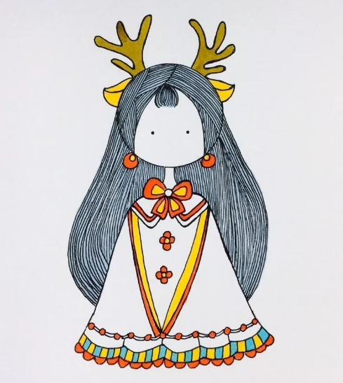 麋鹿少女卡通简笔画