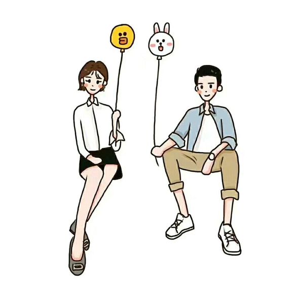 拉着气球的男孩女孩卡通人物简笔画