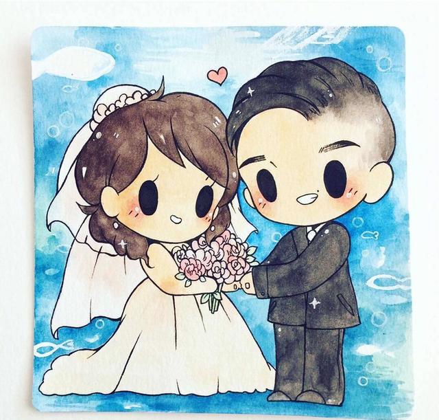 可爱的卡通人物婚纱结婚简笔画,婚纱