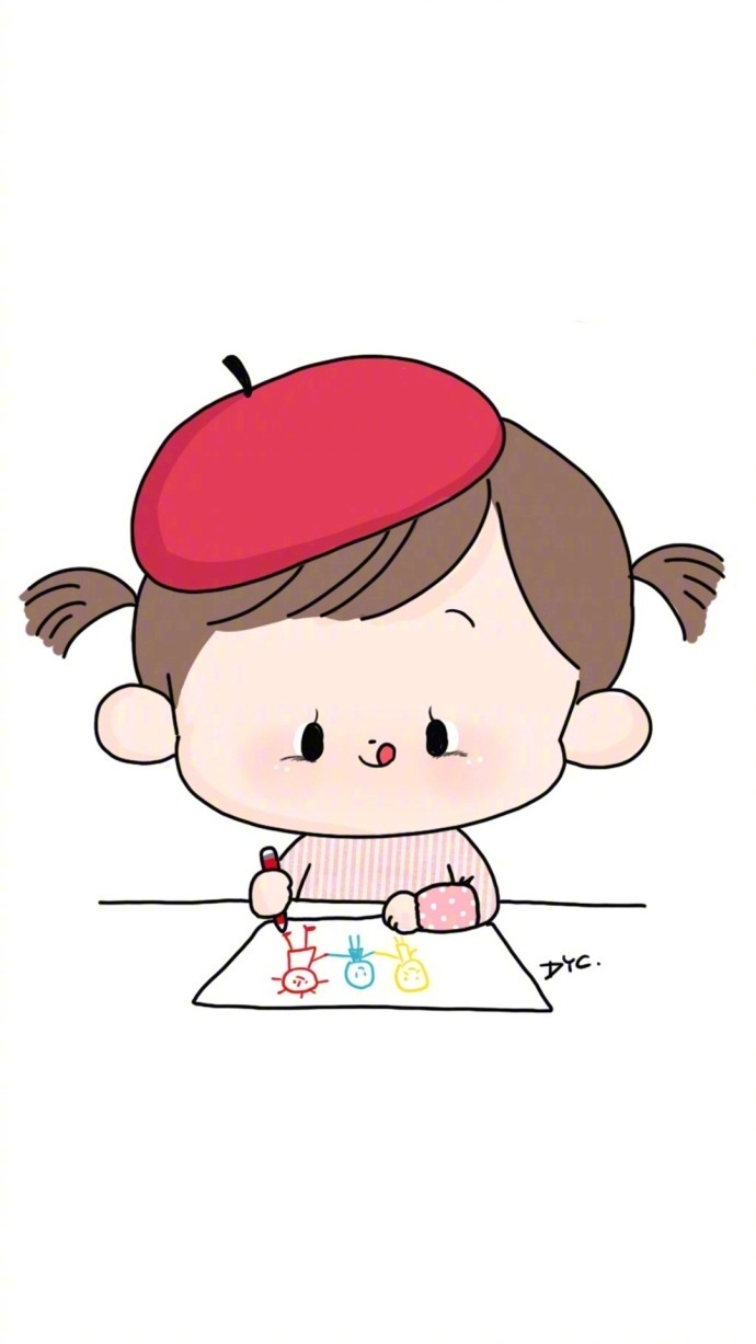 带着红色帽子的小女孩,小女孩在画画的简笔画