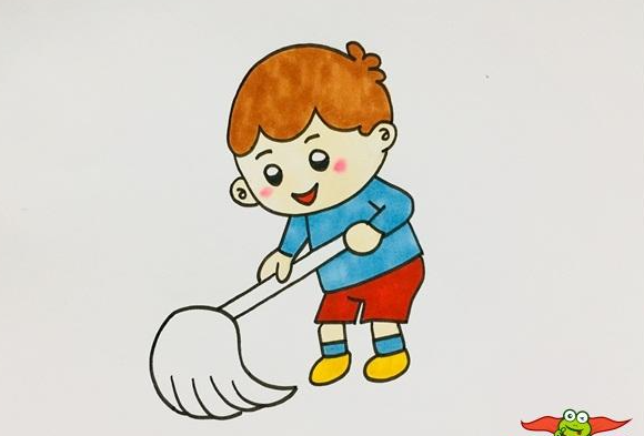 五一劳动节人物简笔画 小同学做家务拖地简笔画