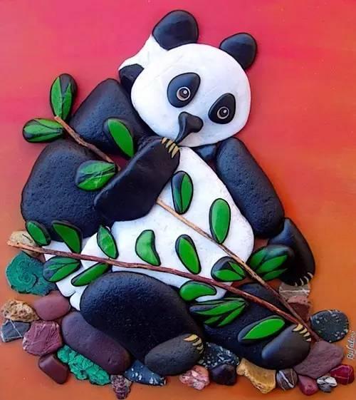 石头彩绘拼画,可爱的大熊猫石头拼画,熊猫石头彩绘