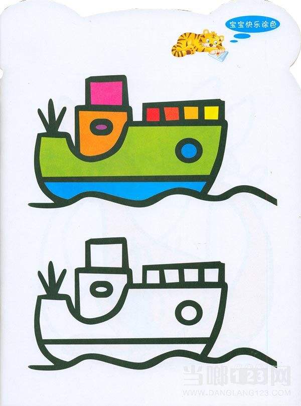 儿童简笔画,彩色涂色简笔画,轮船简笔画