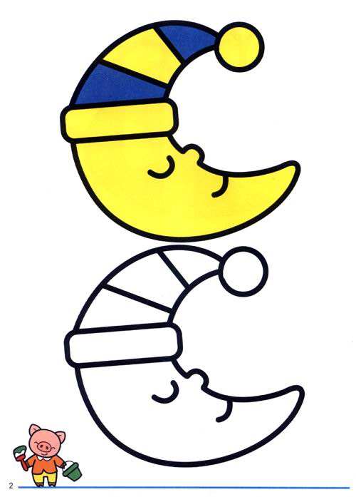儿童简笔画,彩色涂色简笔画,可爱的月亮简笔画