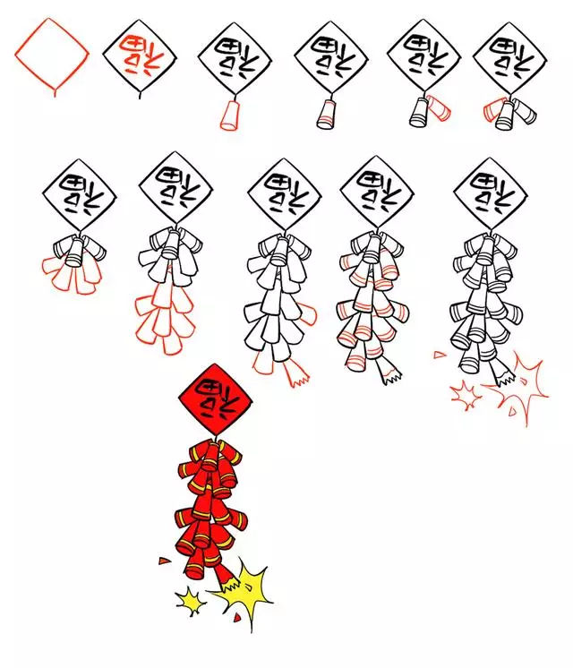 福到,新年鞭炮的卡通简笔画