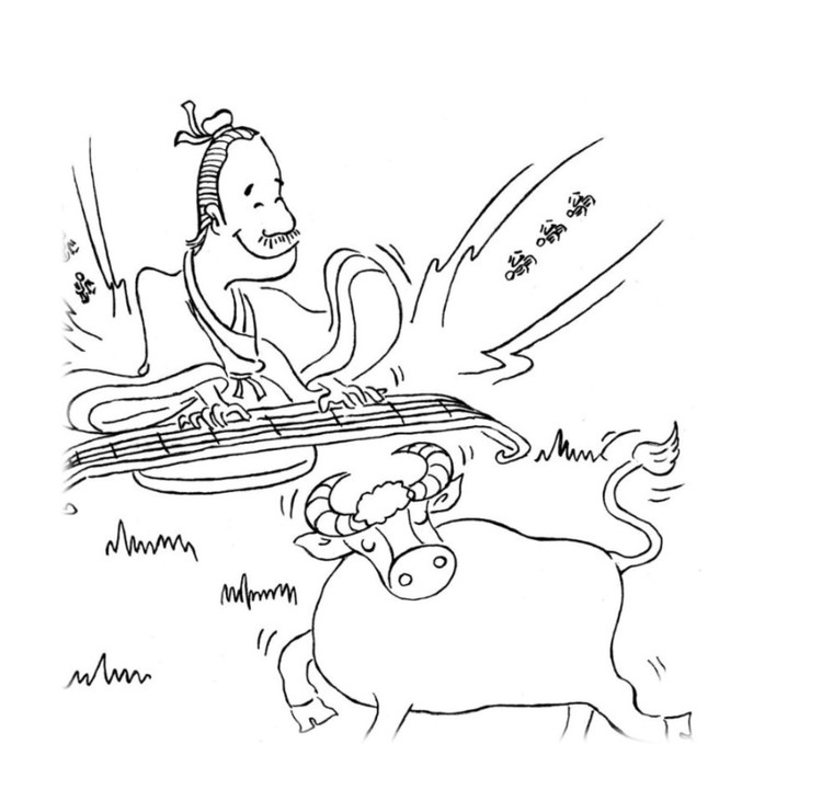 成语简笔画,对牛弹琴简笔画
