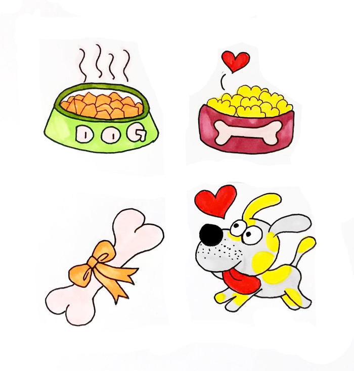 狗粮,狗食盆的彩色卡通简笔画