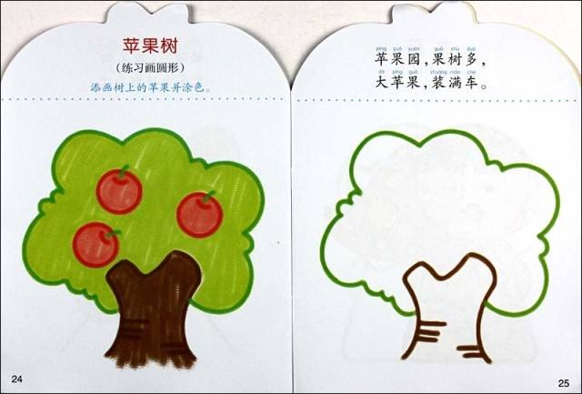 儿童简笔画,彩色涂色简笔画,漂亮的苹果树简笔画