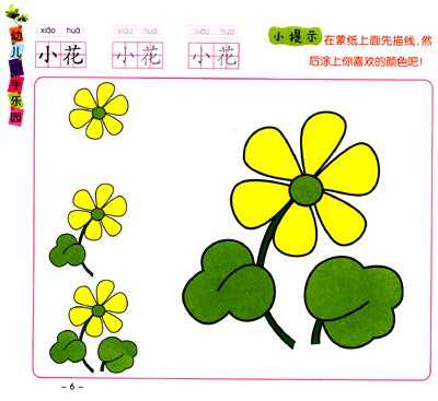 儿童简笔画,彩色涂色简笔画,漂亮的绿叶小花简笔画