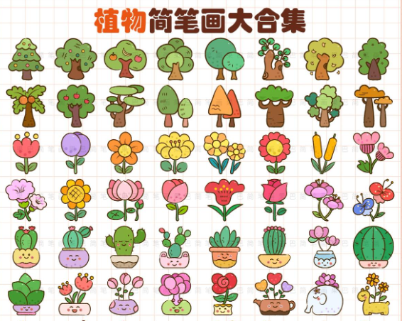 花草树木,它们是大自然的馈赠。无论是高大的树木还是娇艳的花朵,都值得我们用心去描绘和珍藏。 简笔画合集