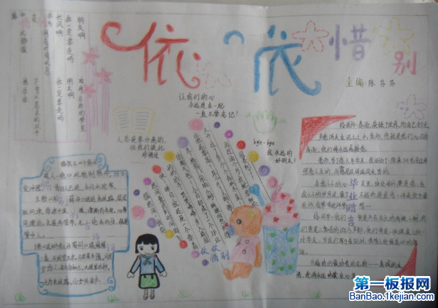 转眼六月,告别,欢送,亦或是悲伤,珍惜眼前,每一个朋友,都是一生不能割舍的情结;珍惜眼前,每一寸校土,都是一生难以再回的港湾。下面让我们来欣赏下同学们设计的毕业惜别手抄报