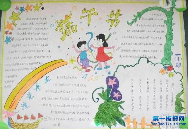 简单的点评下这期端午节的手抄报,是以端午赛龙舟为主题,选材不错,但是主题不够突出,版面文字太多,应适当的添加一些插图