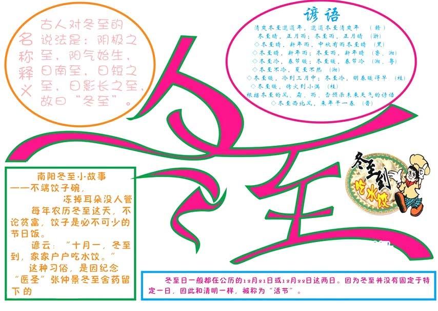 二十四节气,关于冬至,冬至吃饺子的手抄报