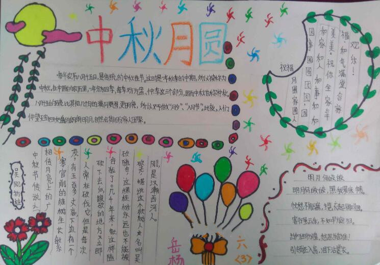 清爽简单的中秋节月圆夜的彩色节日手抄报