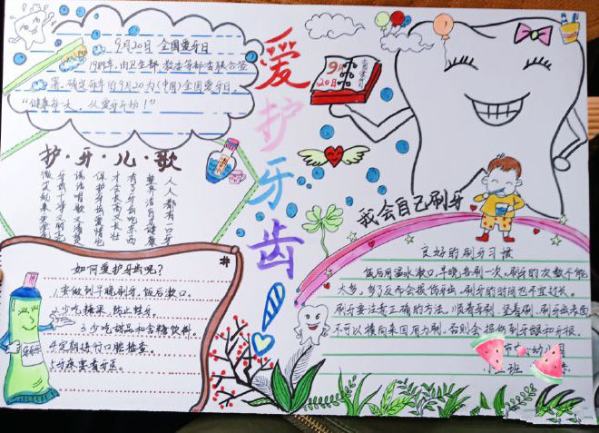 爱护牙齿,爱牙日,关于爱护牙齿爱牙日的小学生爱牙手抄报