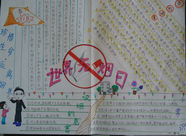 小学“世界无烟日”手抄报