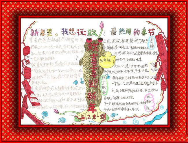 临近春节,人们采办年货,除夕时,全家团聚在一起吃年夜饭。贴年画、春联;迎接新的一年来临。小朋友们也来动手制作一份精美的手抄报,来迎接新的一年。下面是关于迎新春的手抄报——年的传说,漂亮吧! >>>>>迎春节手抄报